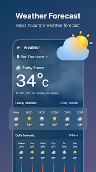 Weather Forecast: Live Weather ให้คำพยากรณ์อากาศที่ละเอียดและแม่นยำโดยเน้นที่ย่านใกล้เคียงของคุณ มีข้อมูลสำคัญเกี่ยวกับสภาพอากาศ เช่น คำพยากรณ์ 24 ชั่วโมง คำพยากรณ์ระยะยาว และการแจ้งเตือนแบบเรียลไทม์ แอปพลิเคชันนี้จะทำให้คุณเตรียมพร้อมสำหรับสภาพอากาศใด ๆ ด้วยคุณสมบัติเช่น แผนภูมิเรดาร์ ข้อมูลดัชนีคุณภาพอากาศ และเวลาขึ้น/ตกของดวงอาทิตย์ Weather Forecast จะทำให้คุณทราบข้อมูลและพร้อมสำหรับกิจกรรมกลางแจ้ง
